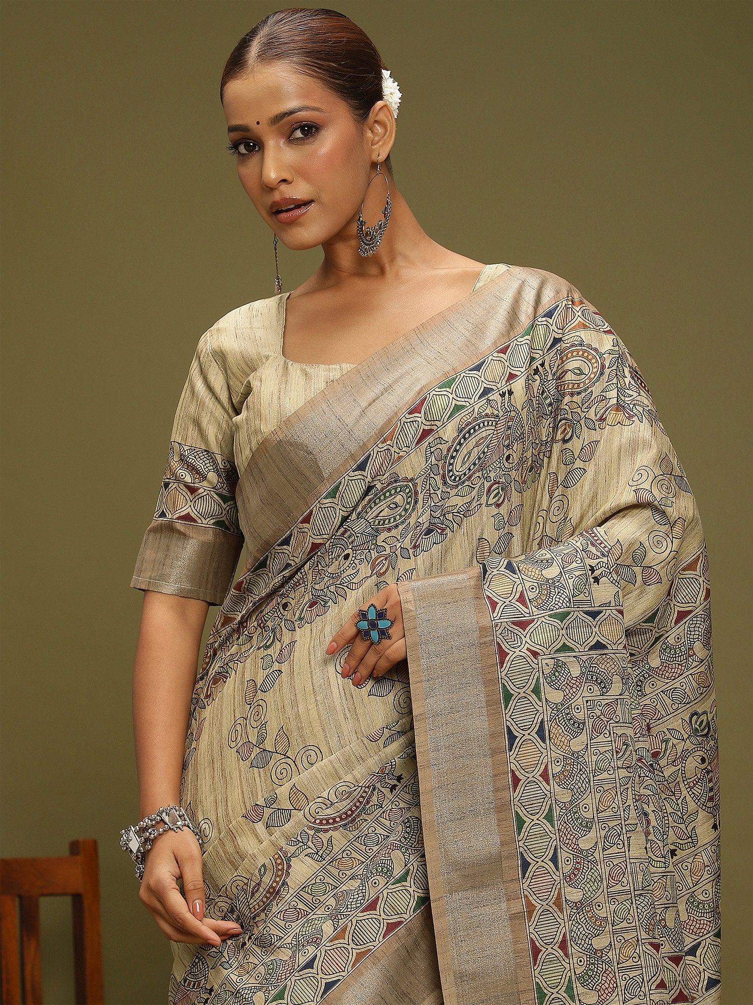 Saree color: Beige