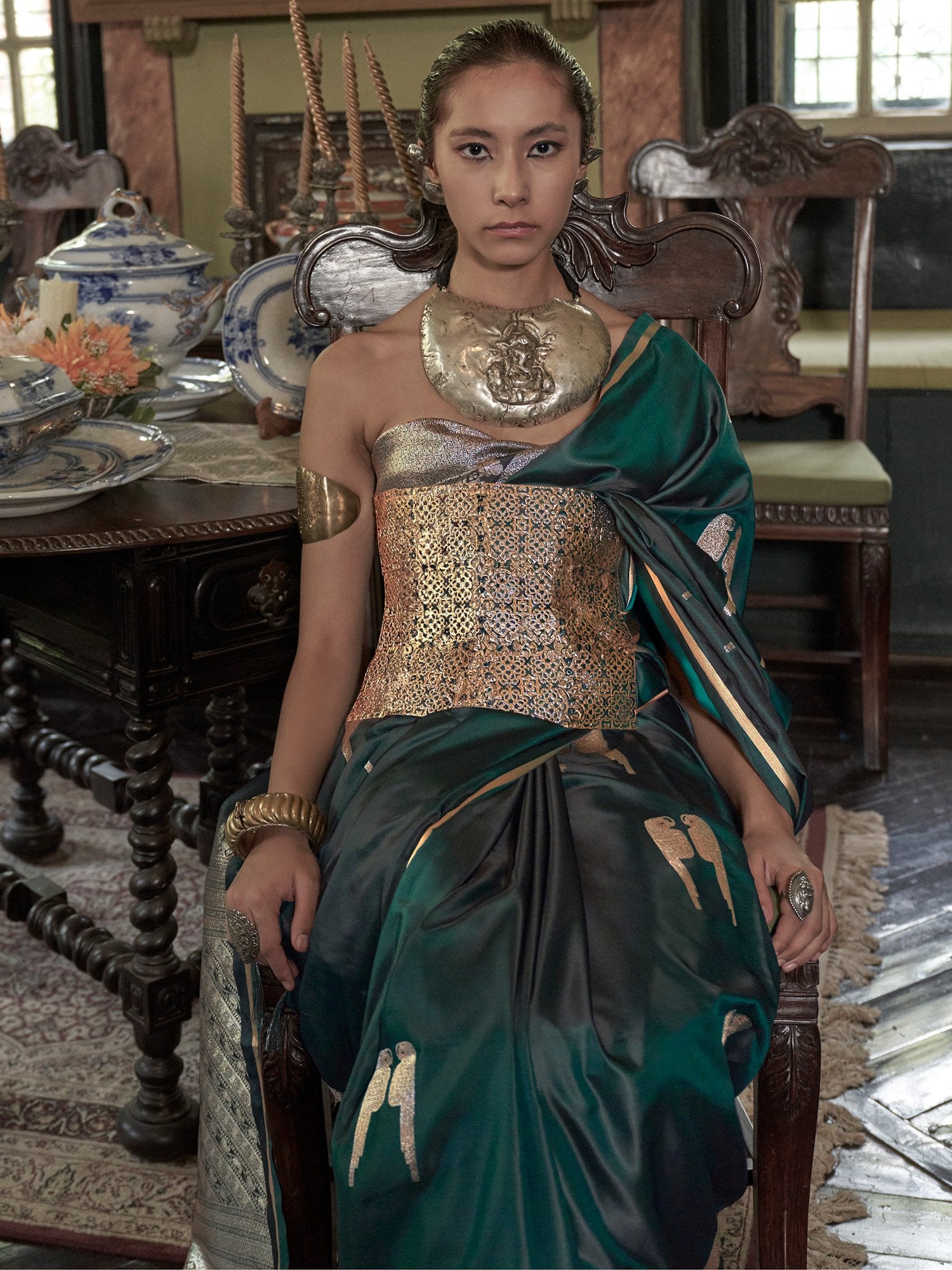 Saree color: Dark Green