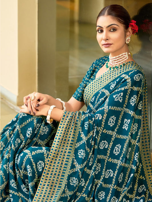 Teal Bandhani Georgette Printed Saree