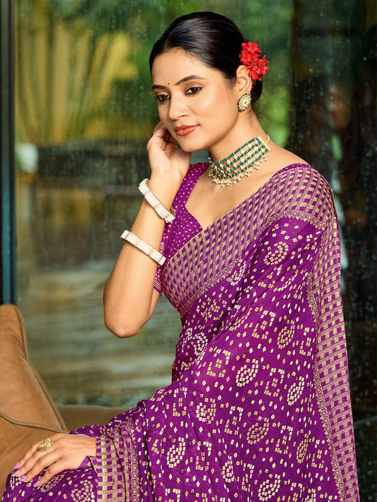 Rich Purple Designer Bandhani Georgette Saree