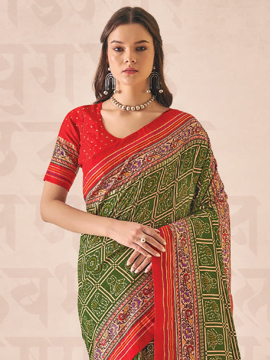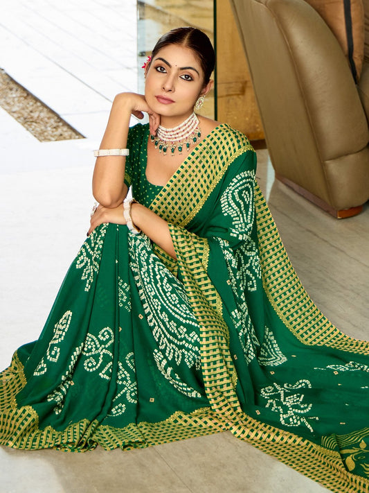 Timeless Green Bandhani Print Saree