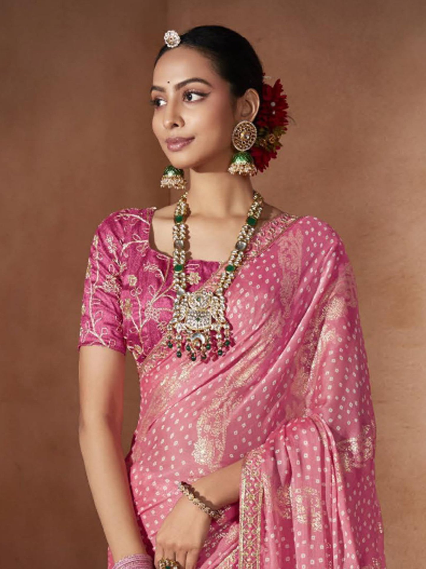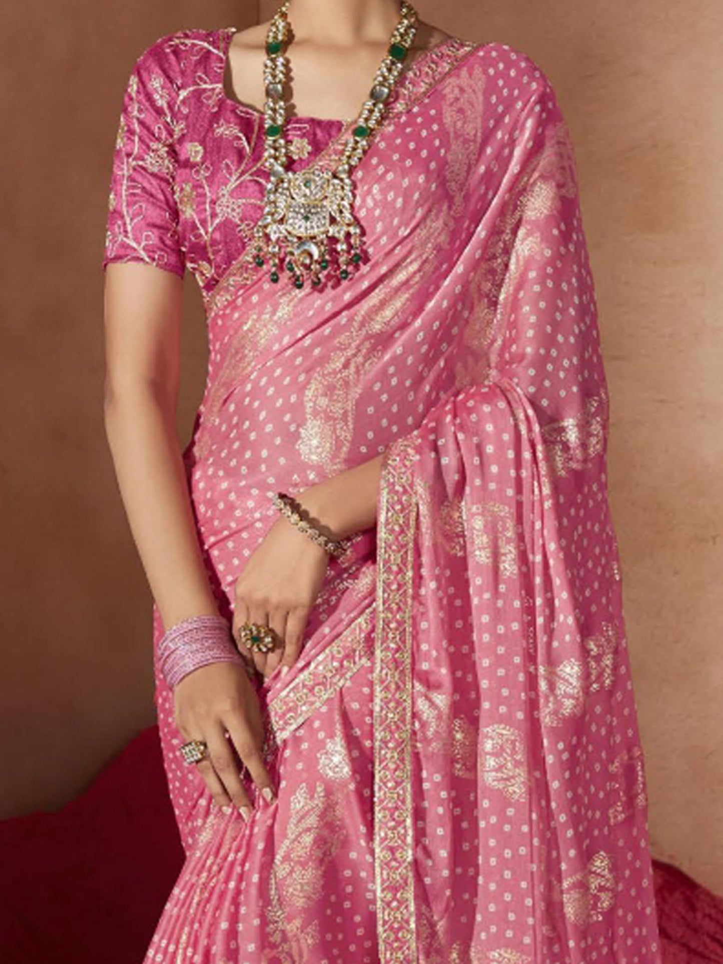 pink chiffon woven saree women ethnic traditional partywear wedding festive stylish elegant designer lightweight soft comfortable premium quality rich texture graceful chic versatile heritage classic modern occasion collection