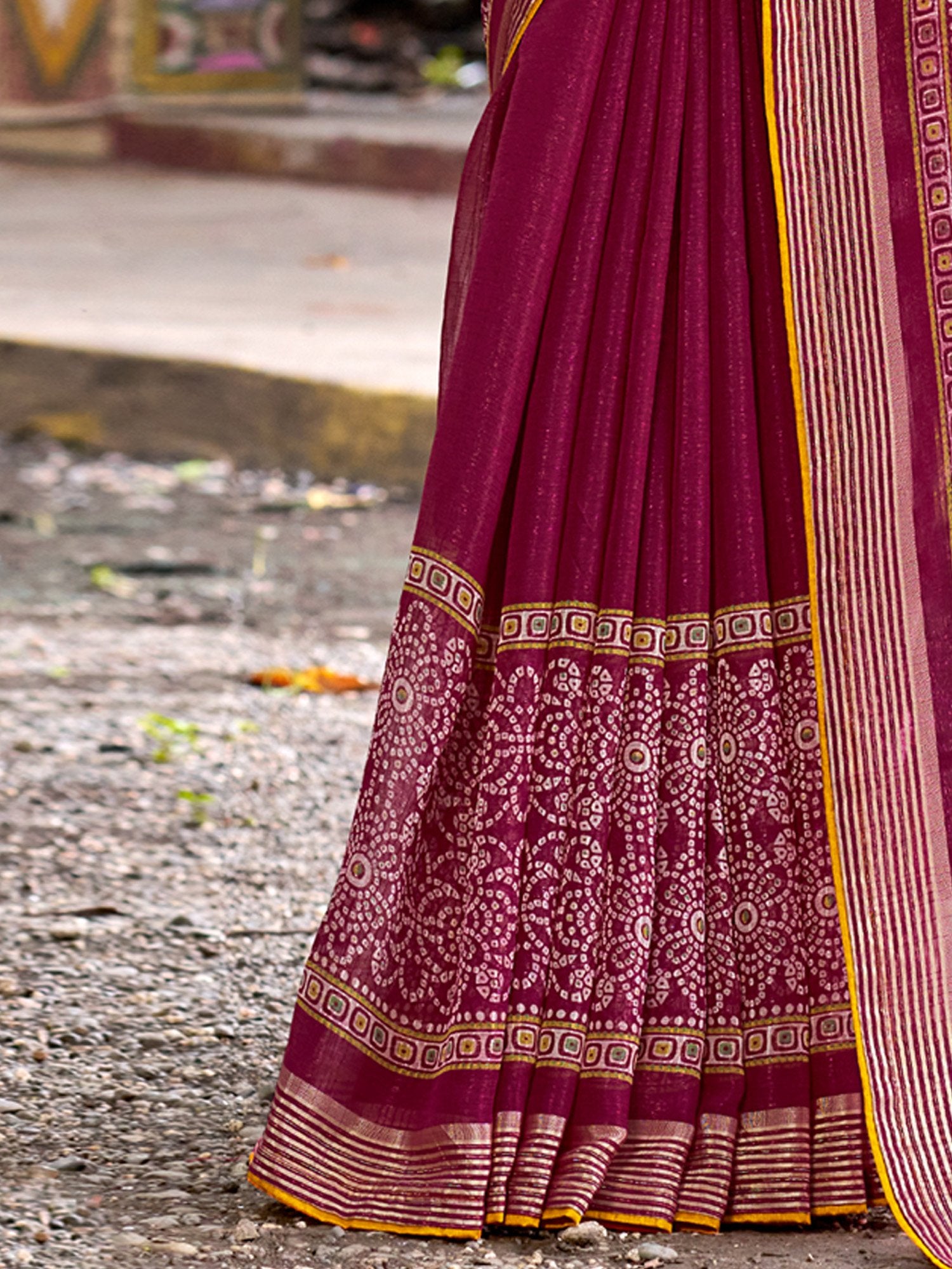 magenta bandhani chiffon saree women fashion ethnic traditional wedding festive partywear lightweight soft comfortable elegant designer woven premium quality rich texture graceful stylish trend occasion daily wear collection heritage classic