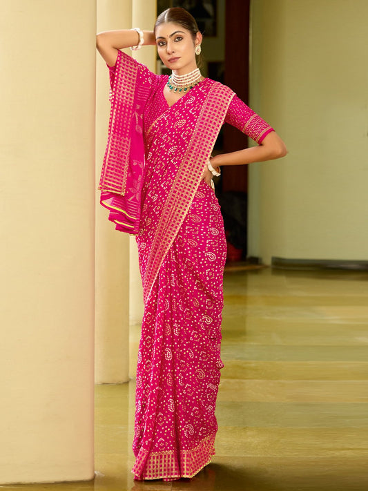 Opulent Magenta Bandhani Georgette Saree