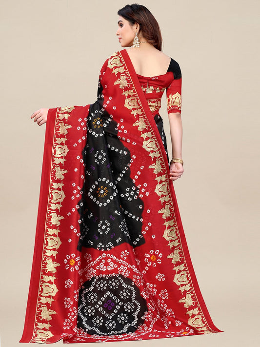 Black Bandhani Art Silk Printed Saree