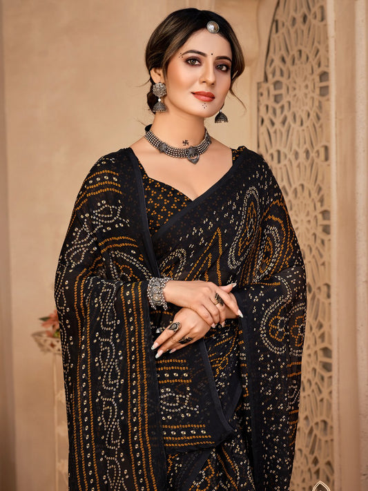 Black Bandhani Chiffon Printed Saree