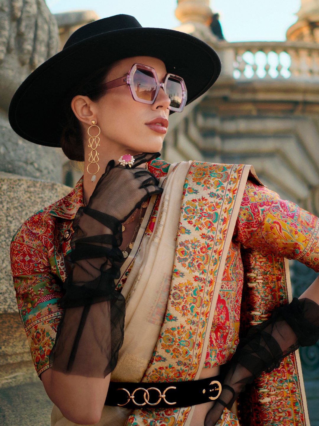 Saree color: Cream