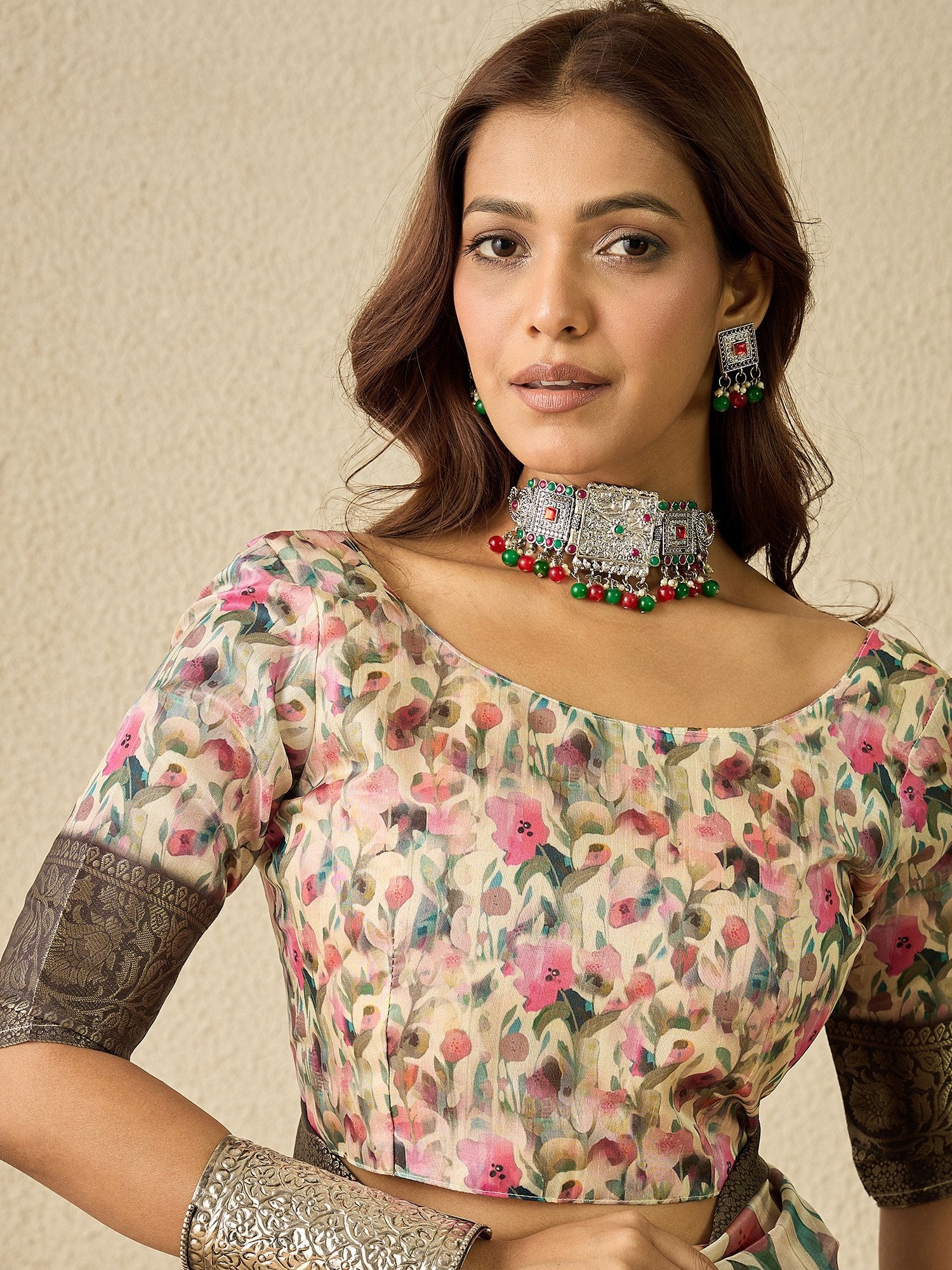 Saree color: Cream
