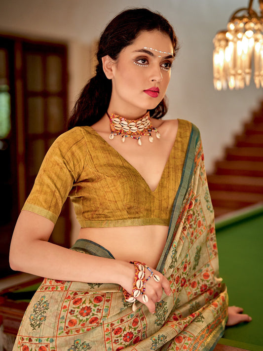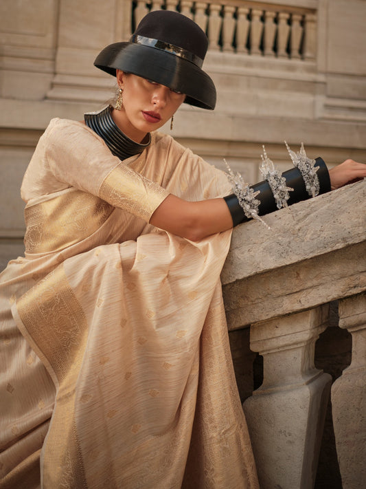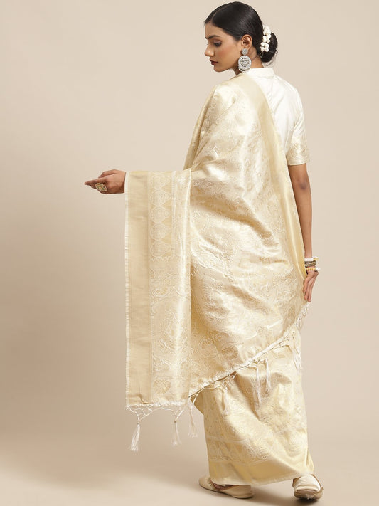 Cream Kanjeevaram Banarasi Silk Woven Saree