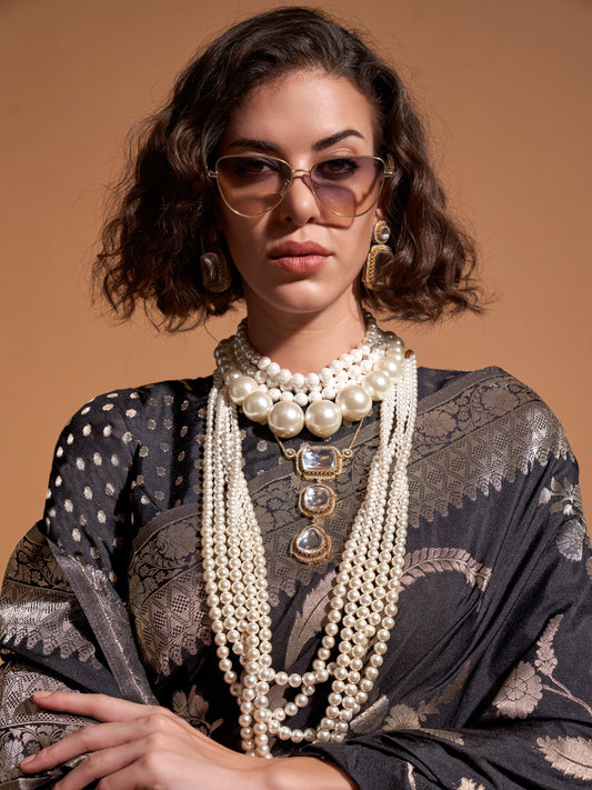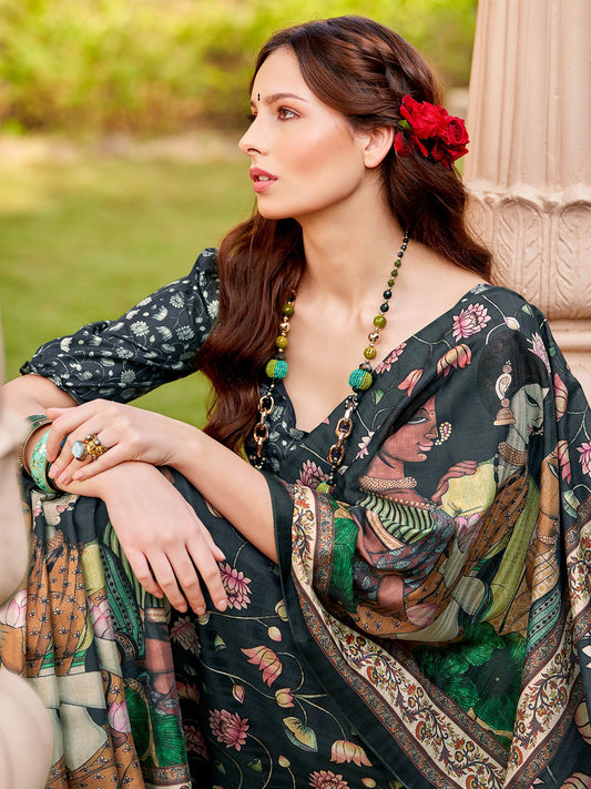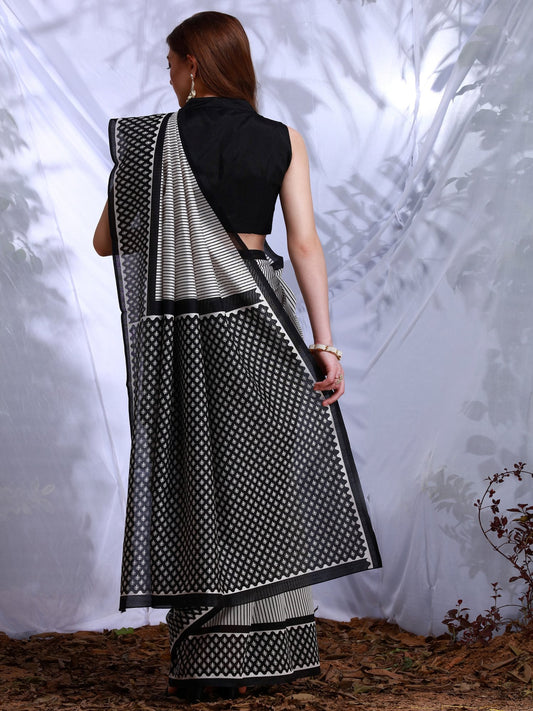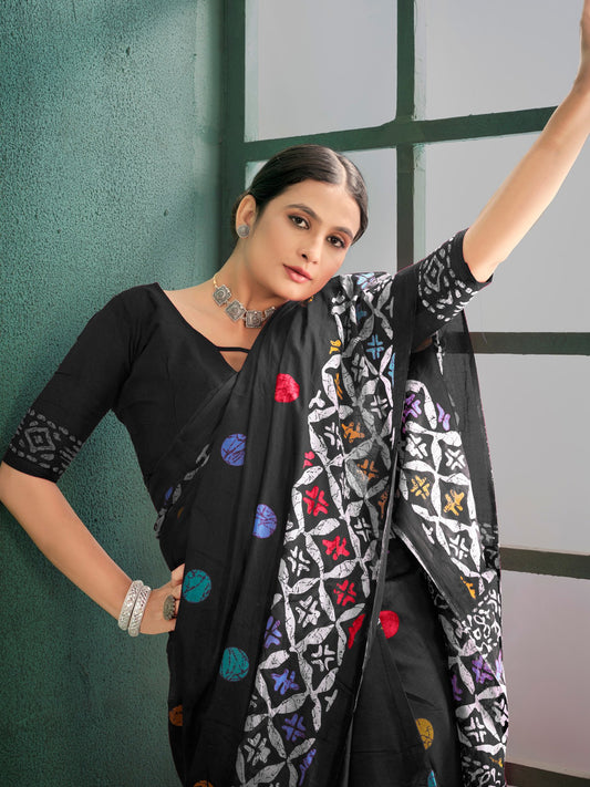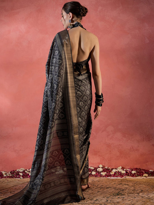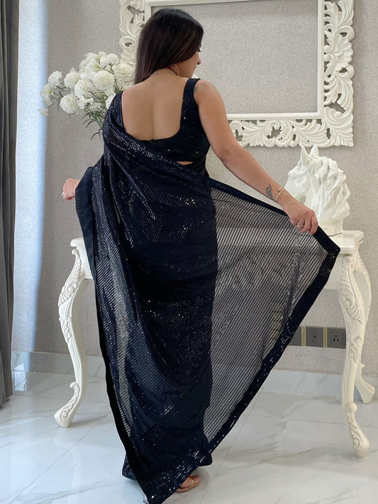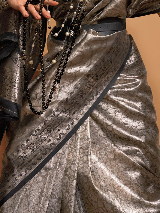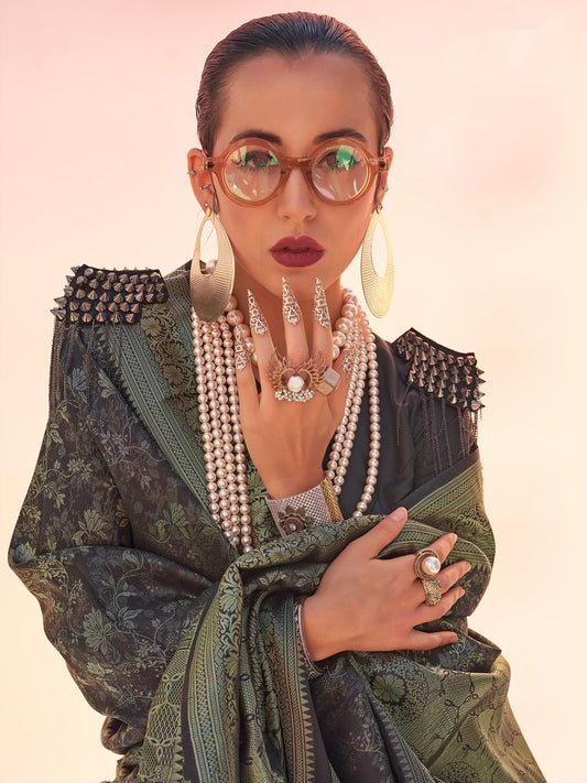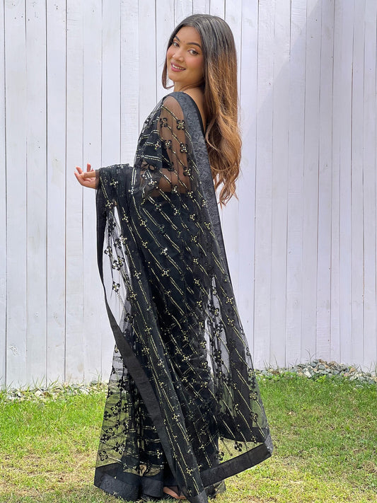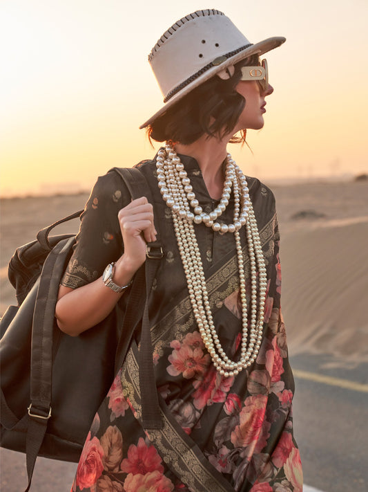 Regal Black Sheer Chiffon Floral Motifs Saree