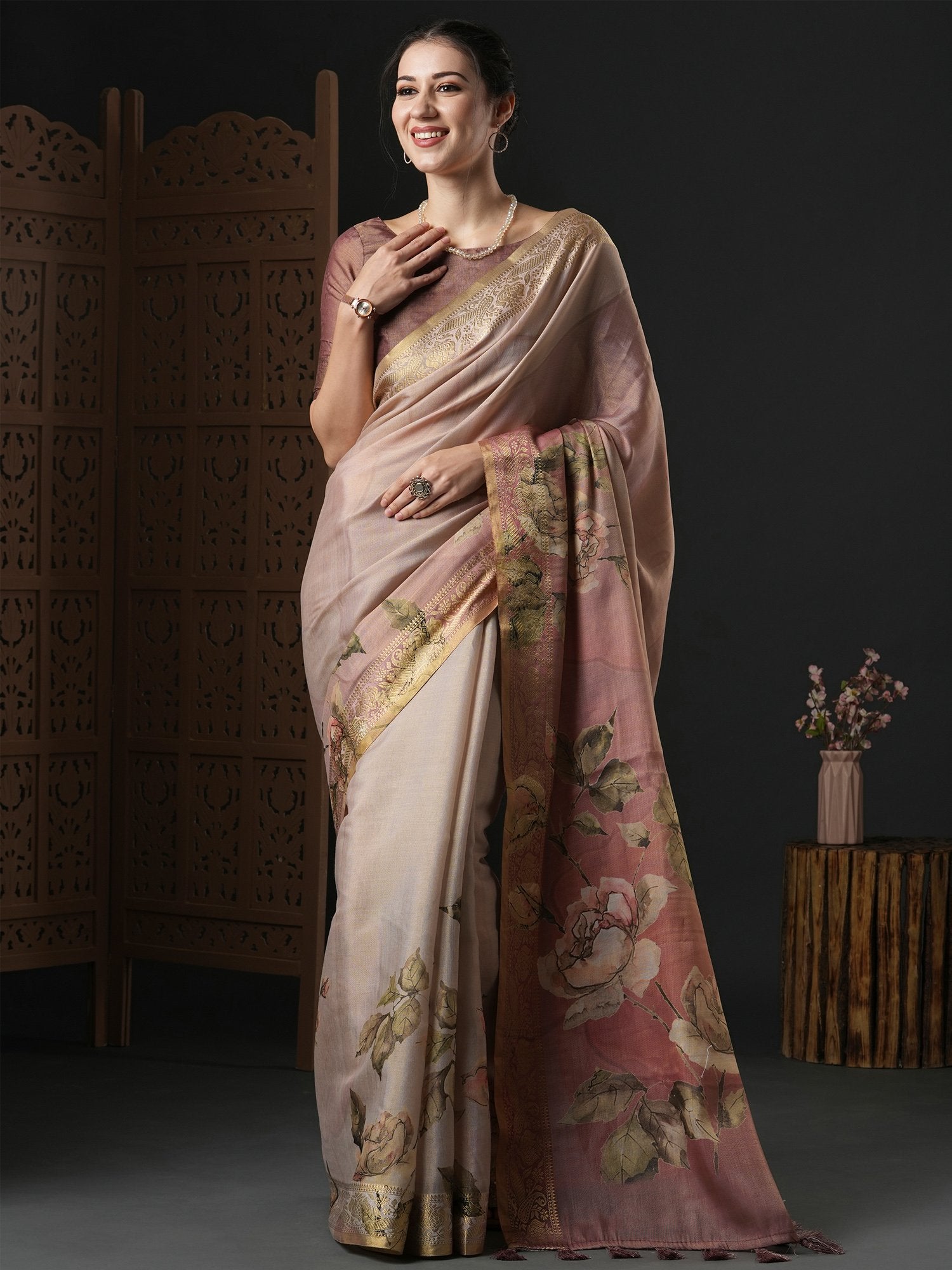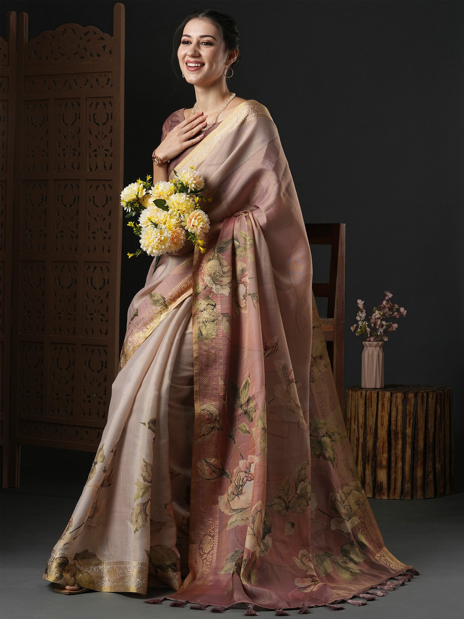 Saree color: Brown