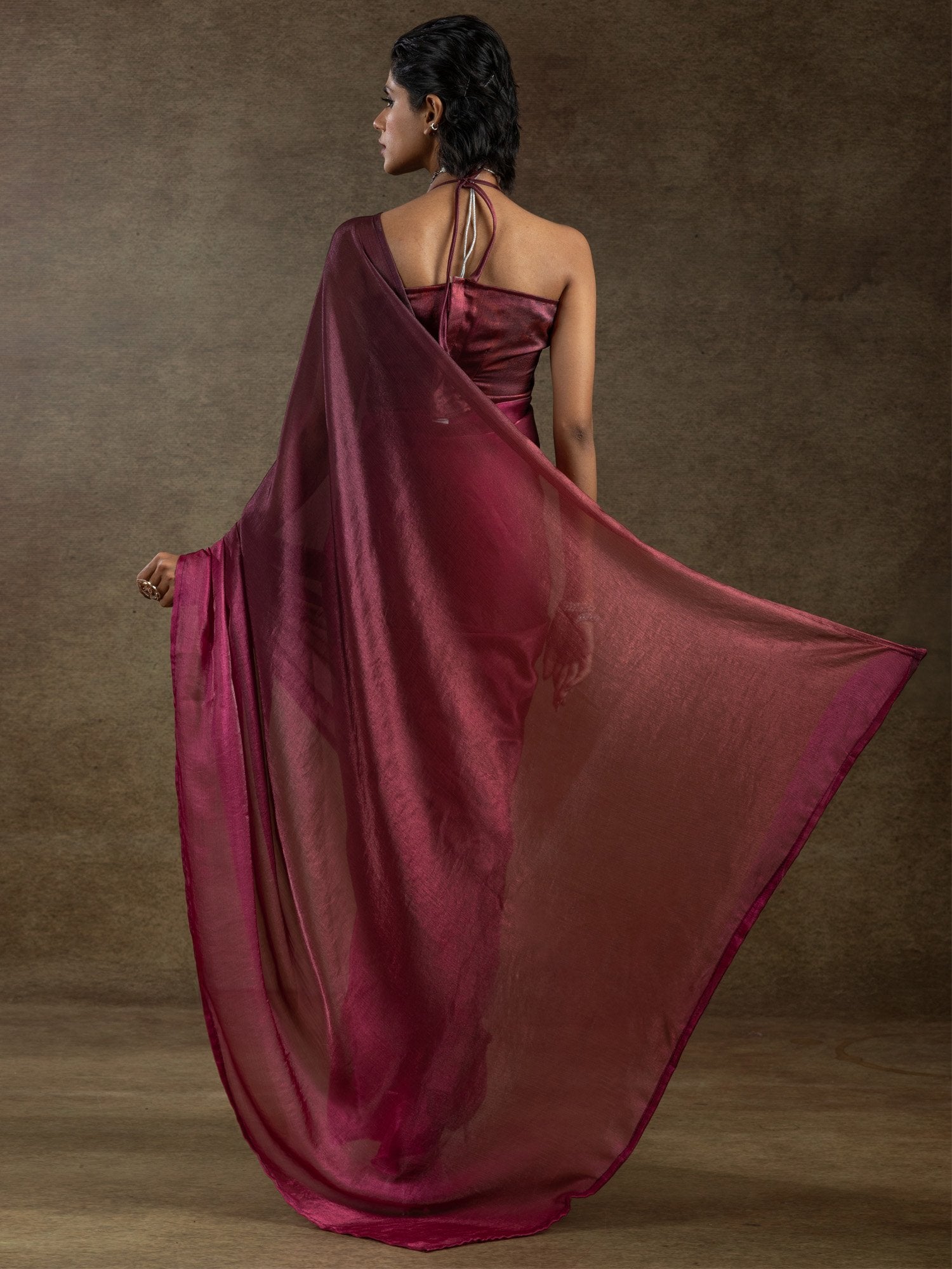 Burgundy Party Wear Satin Silk Half & Half Saree