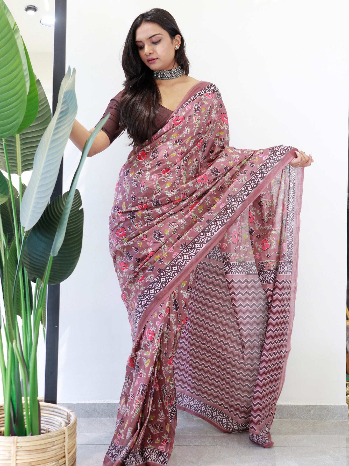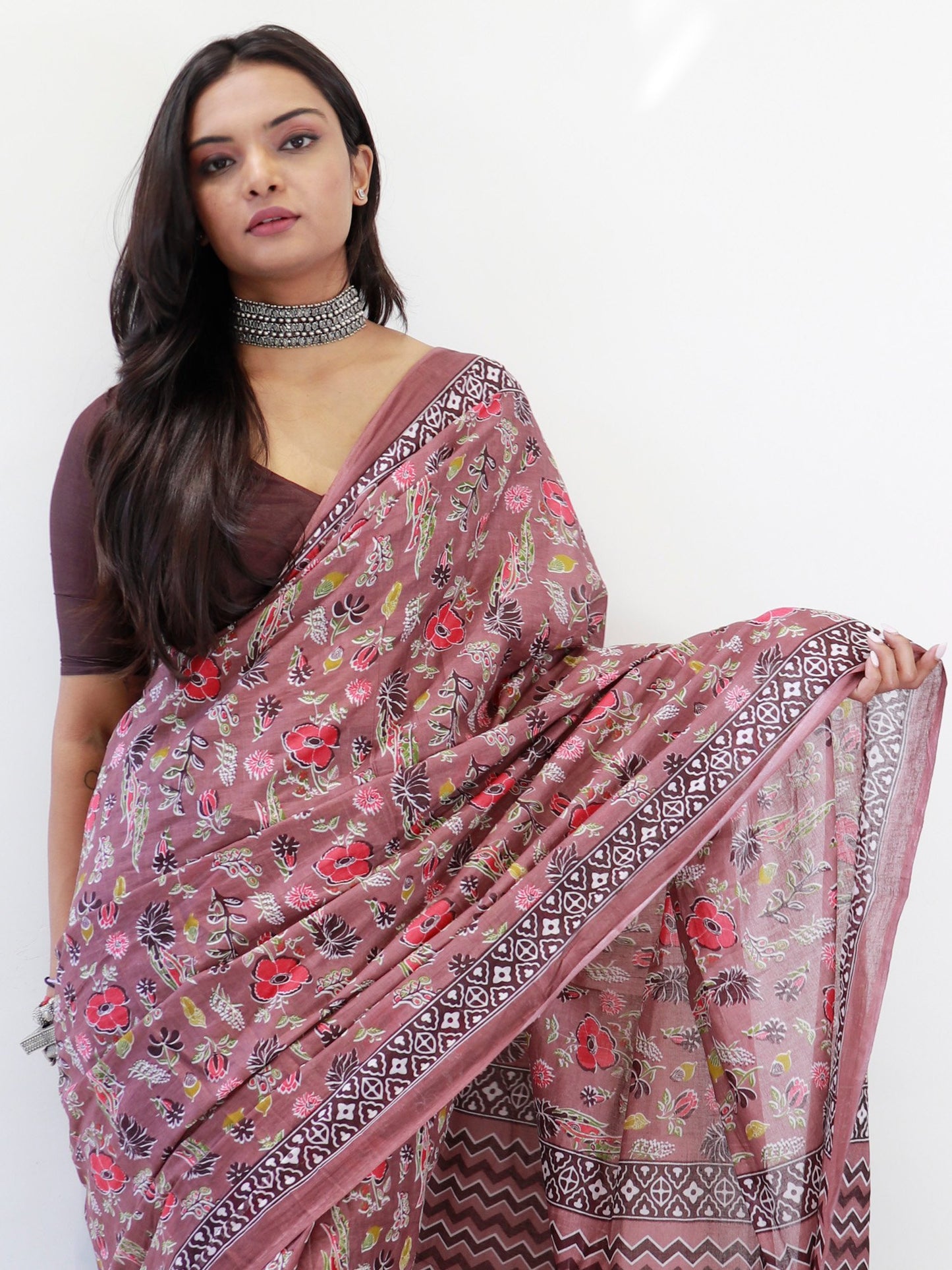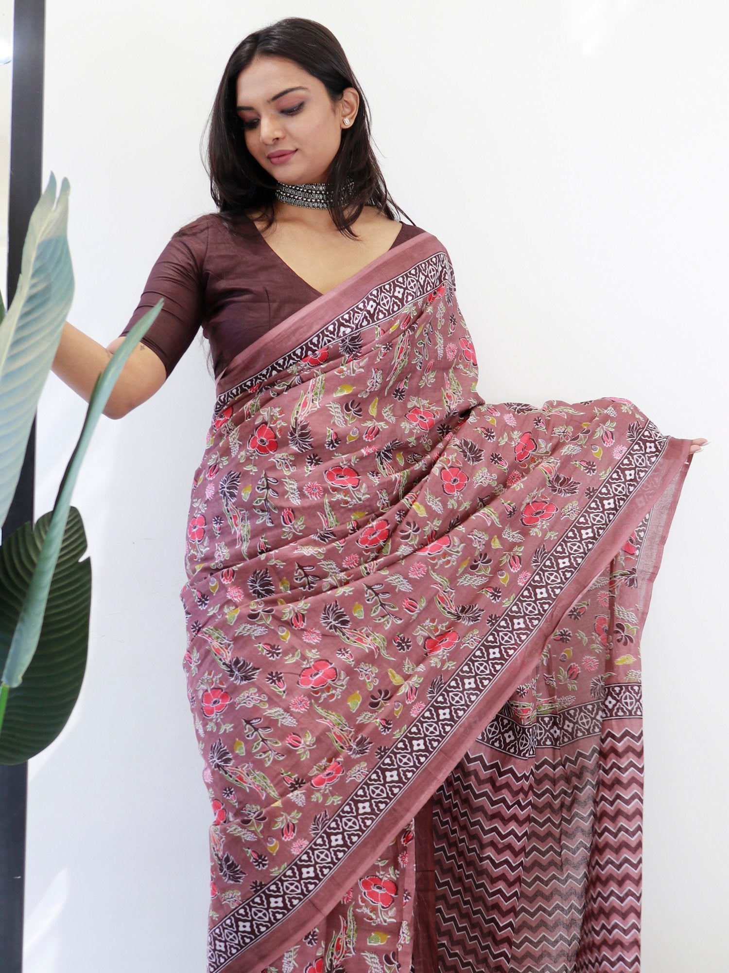 brown cotton printed saree women ethnic traditional partywear wedding festive stylish elegant designer lightweight soft comfortable premium quality rich texture graceful chic versatile heritage classic modern occasion collection