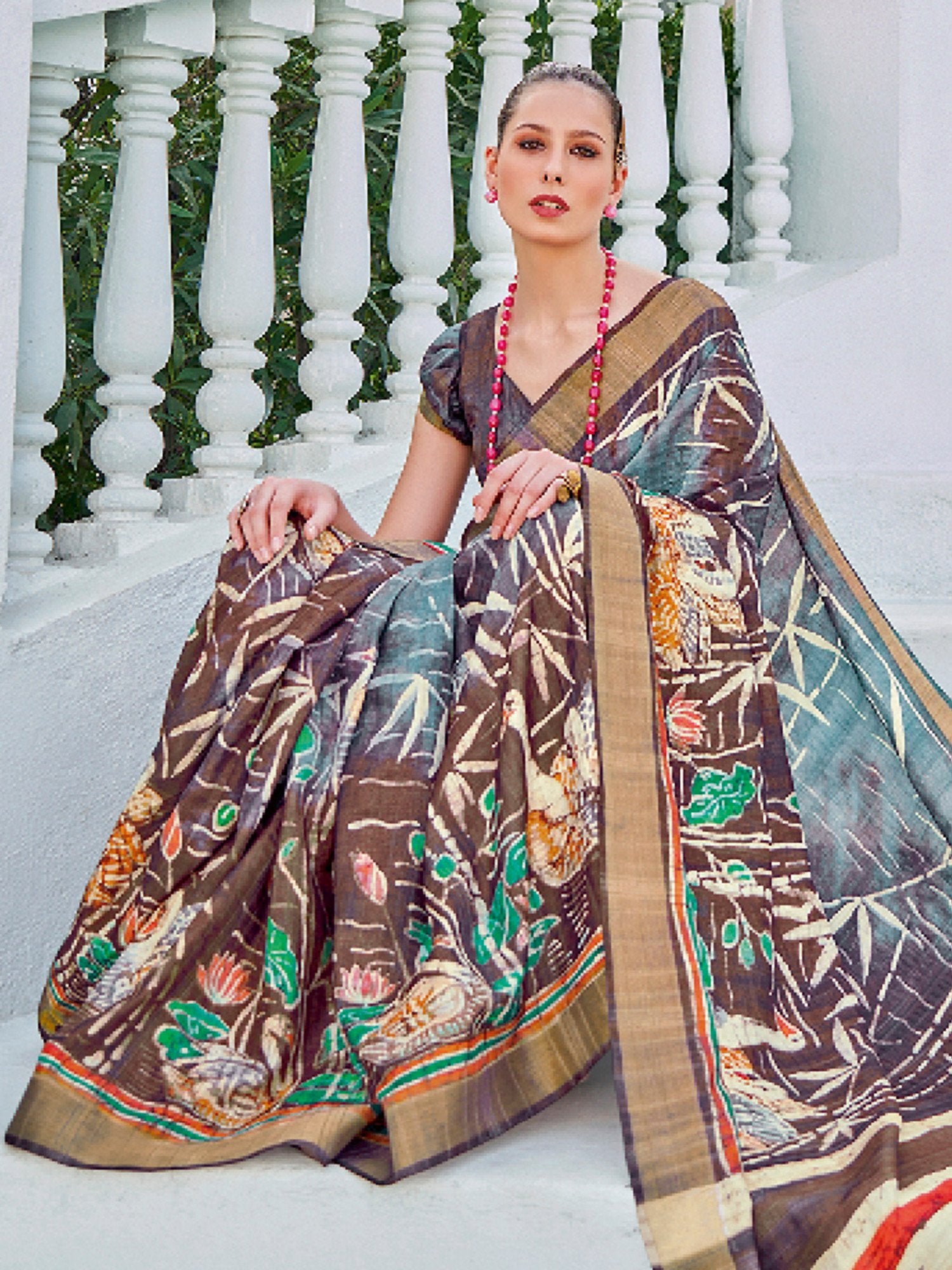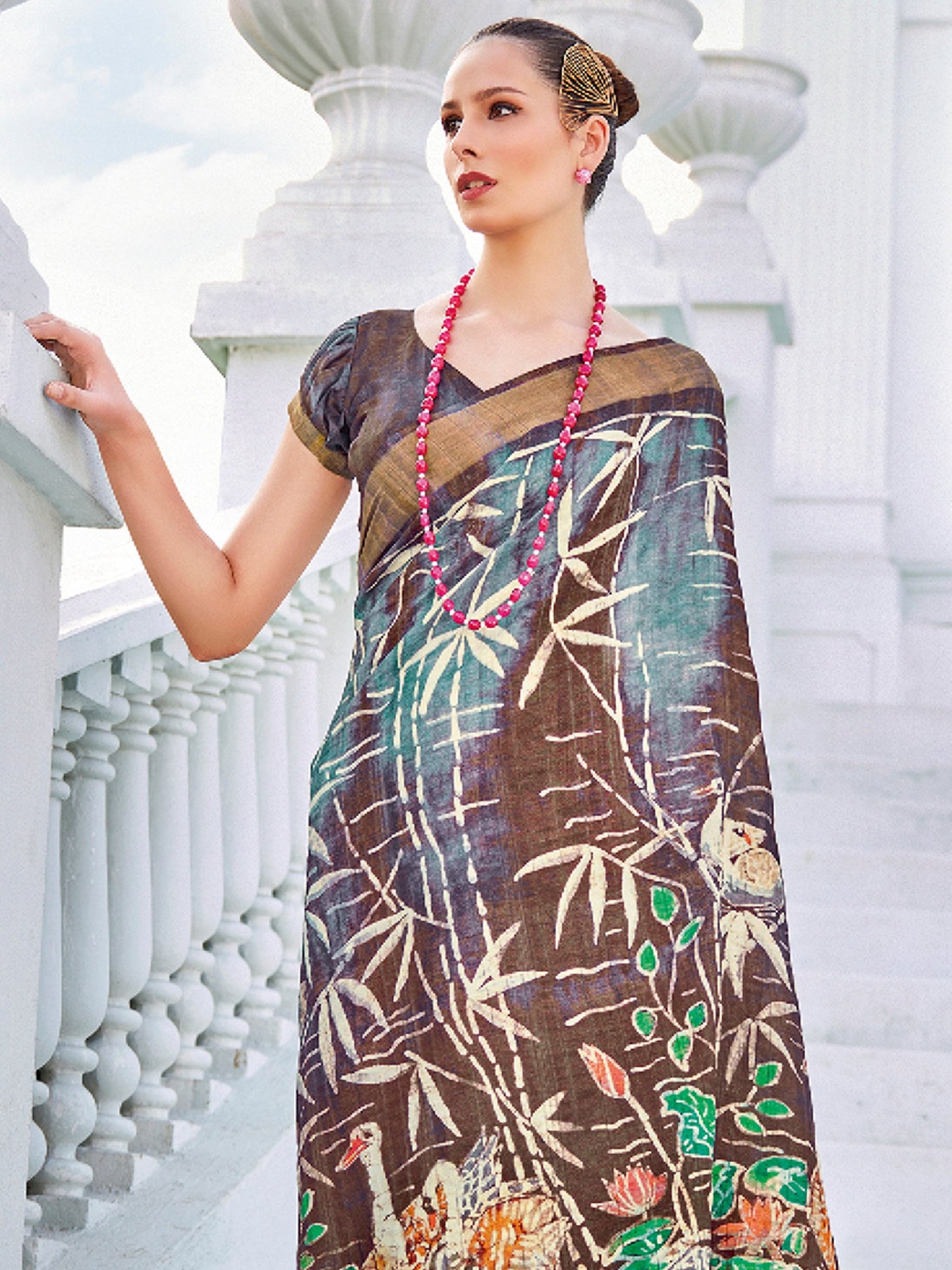 brown cotton blend woven saree women ethnic traditional partywear wedding festive stylish elegant designer lightweight soft comfortable premium quality rich texture graceful chic versatile heritage classic modern occasion collection cotton
