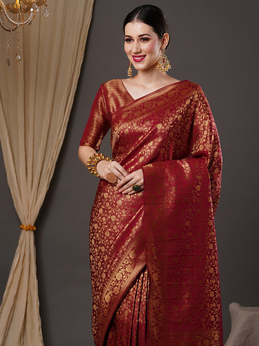 Maroon Kanjeevaram Silk Blend Woven Saree