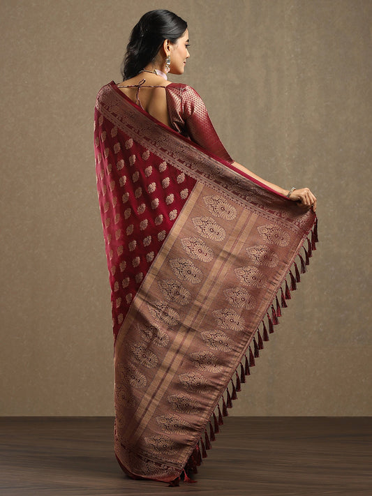 Maroon Kanjeevaram Georgette Woven Saree