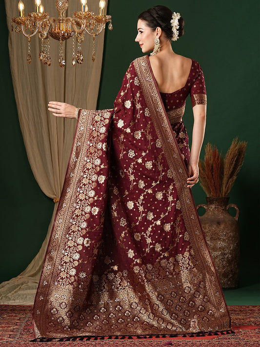 Maroon Chickankari Lucknowi Banarasi Silk Saree
