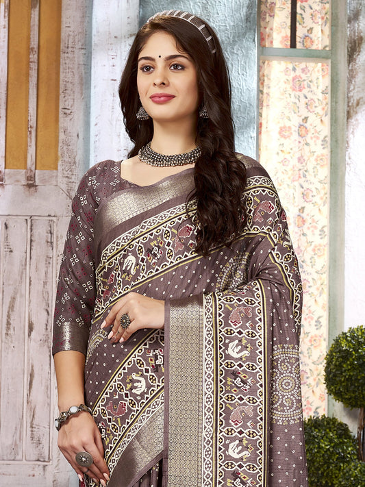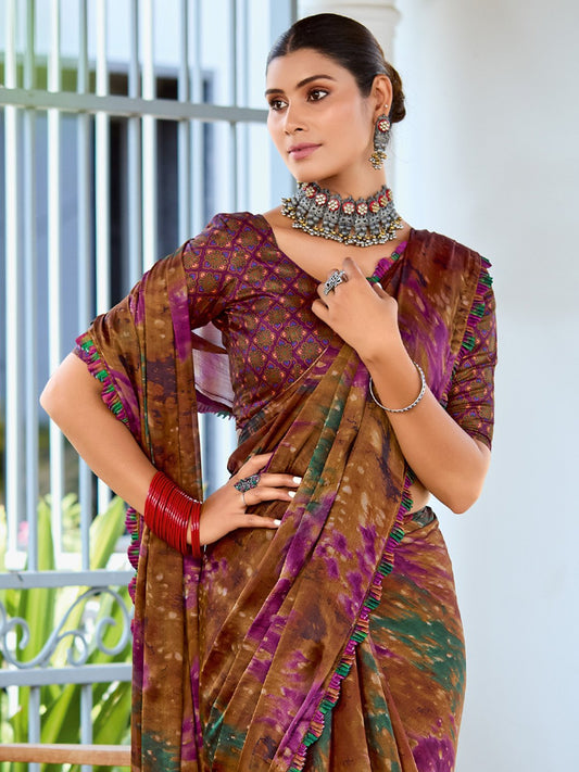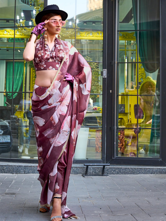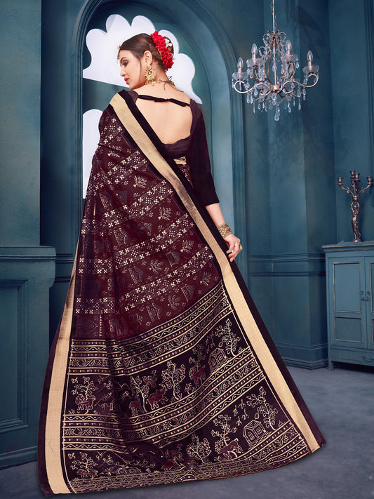 Maroon Bhagalpuri Muslin Digital Print Saree