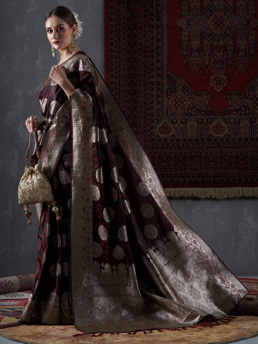 Heritage Burgundy Designer Zari Woven Distinct Saree