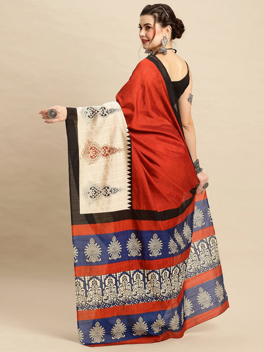 Beautiful Rich Maroon Banarasi Satin Silk Saree