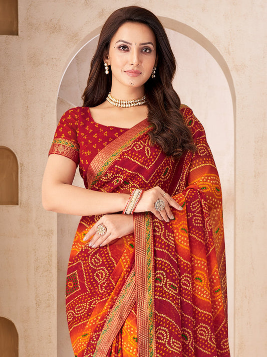 Radiant Yellow Sheer Chiffon Floral Motifs Saree