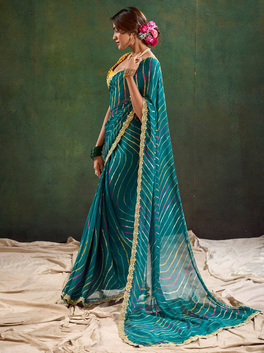 Regal Teal Blue Sheer Chiffon Lightweight Saree