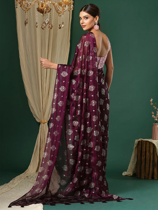 Radiant Grey Sheer Chiffon Floral Motifs Saree