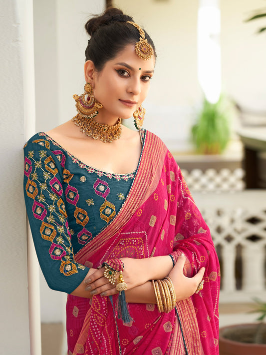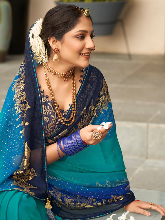 Radiant Blue Sheer Chiffon Lightweight Weave Saree