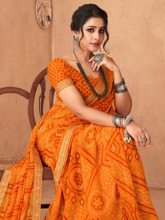 Nyra Yellow Sheer Chiffon Bandhani Saree