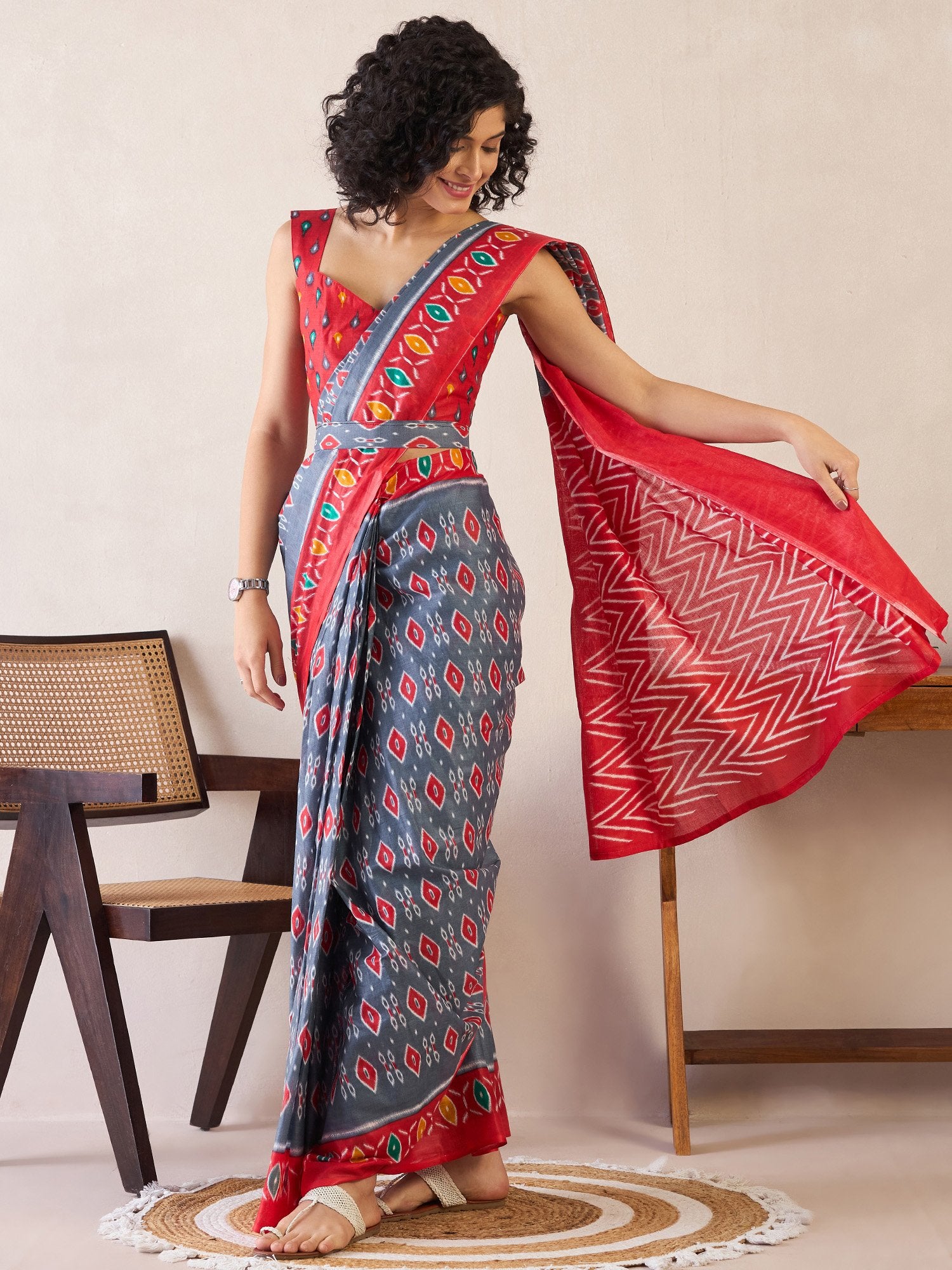 grey cotton woven saree women ethnic traditional partywear wedding festive stylish elegant designer lightweight soft comfortable premium quality rich texture graceful chic versatile heritage classic modern occasion collection