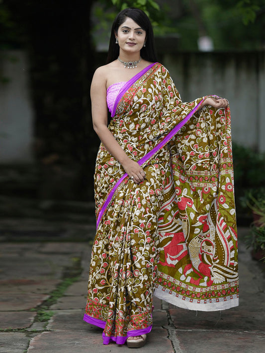 Charcoal Banarasi Chanderi Cotton Woven Saree