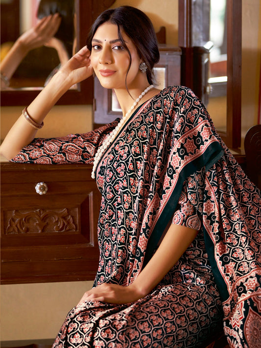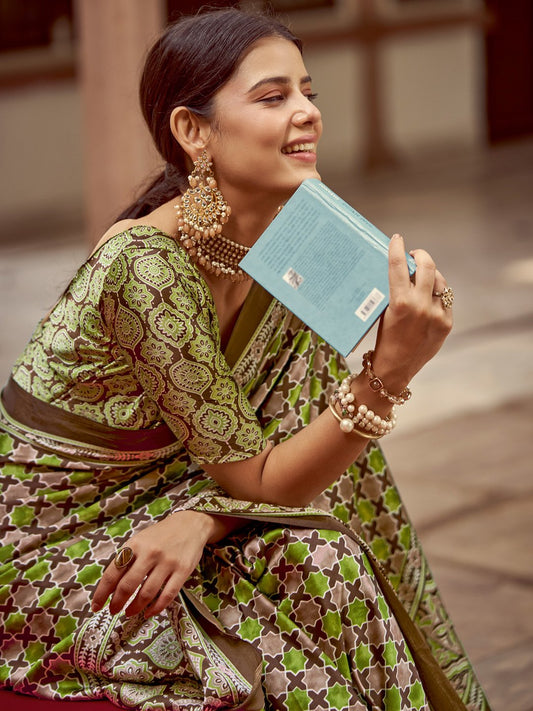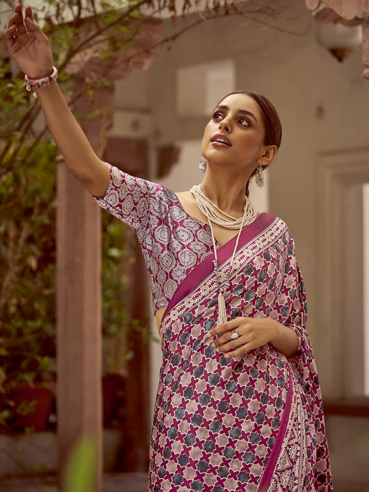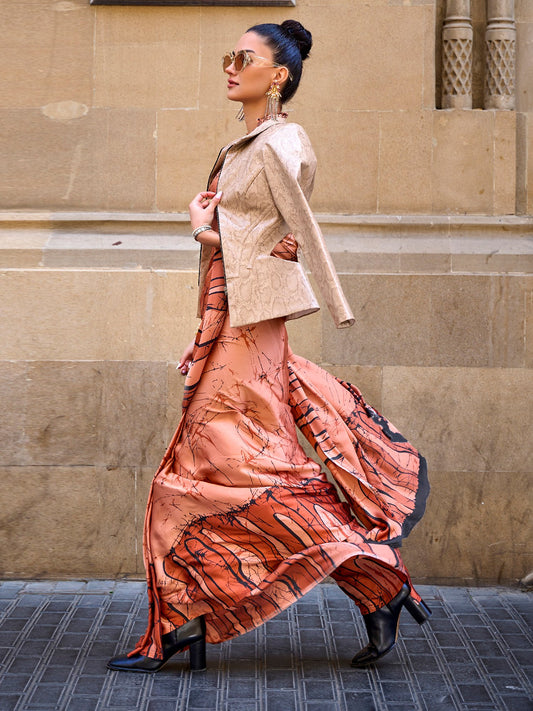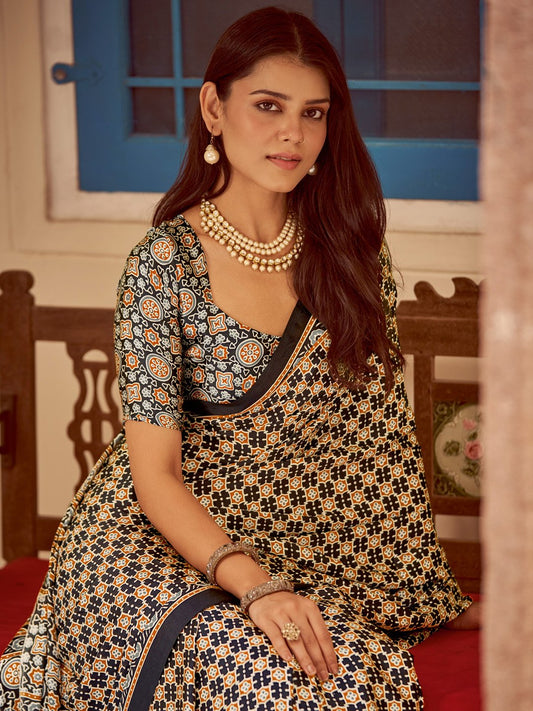 Multicolor Cream Crepe Digital Printed Silk Saree