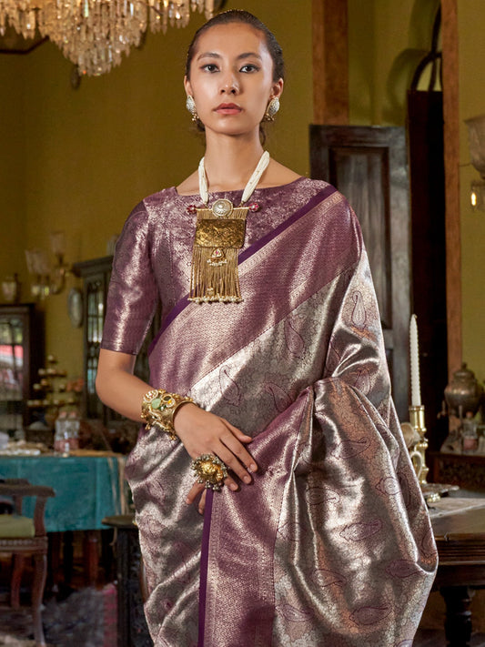 Purple Banarasi Kanjeevaram Silk Woven Saree