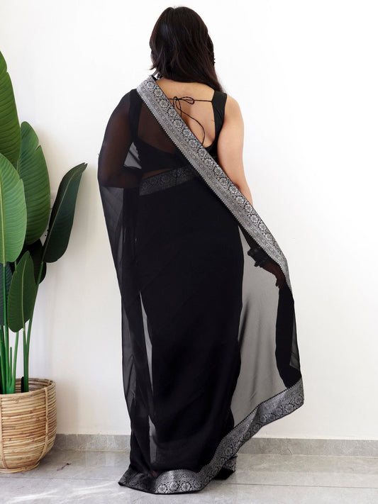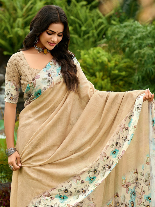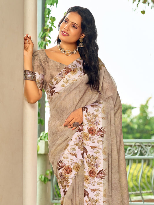 Beautiful Bloom Pink Banarasi Satin Silk Saree