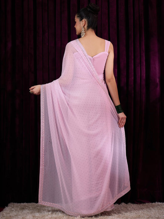 Beautiful Blush Pink Banarasi Satin Silk Saree