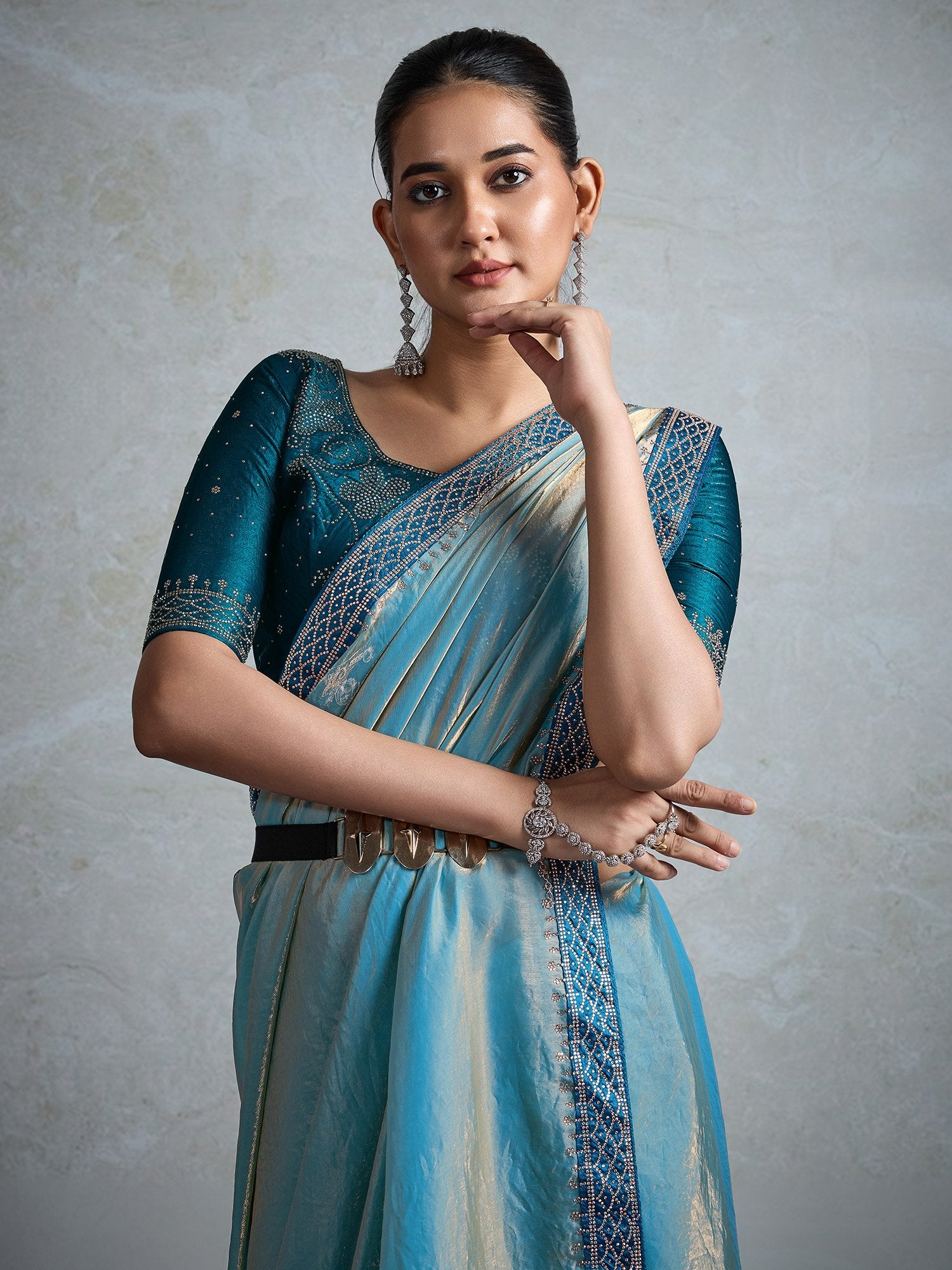 Saree color: Teal blue