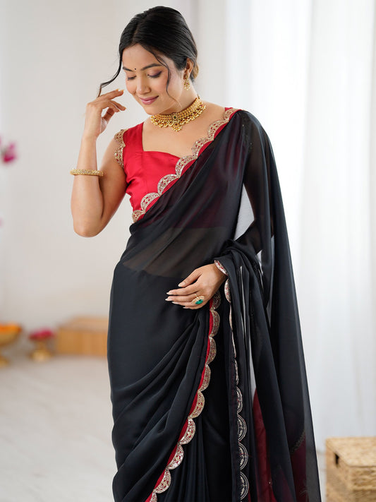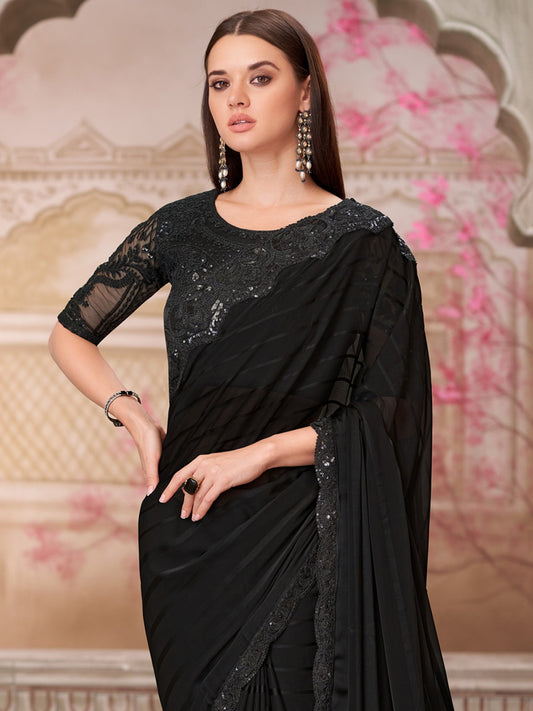 Black Party Wear Pure Georgette Embellished Saree