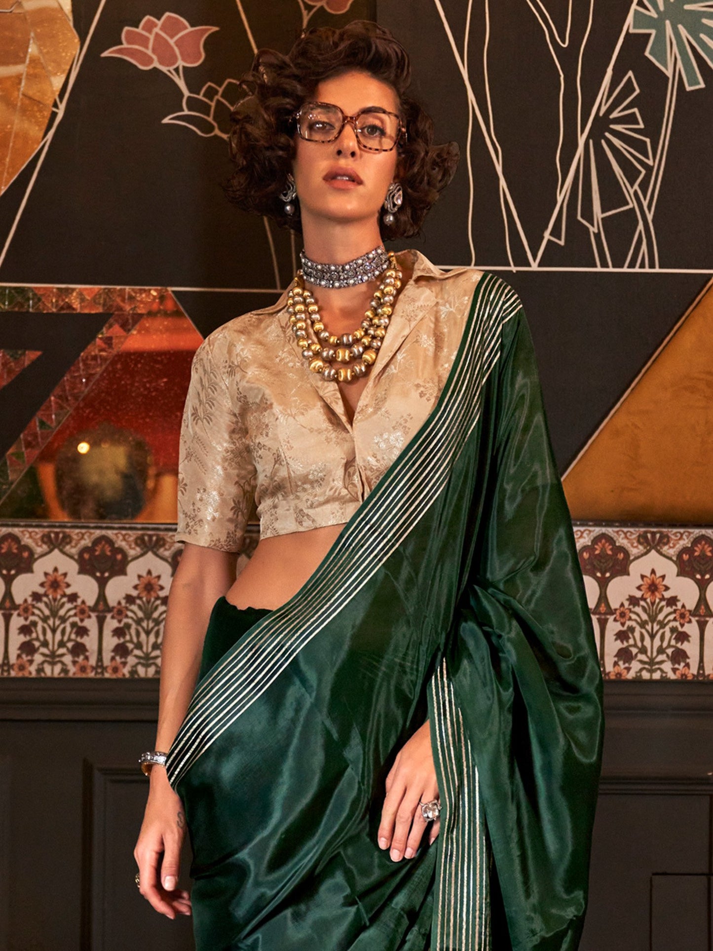 Saree color: Green