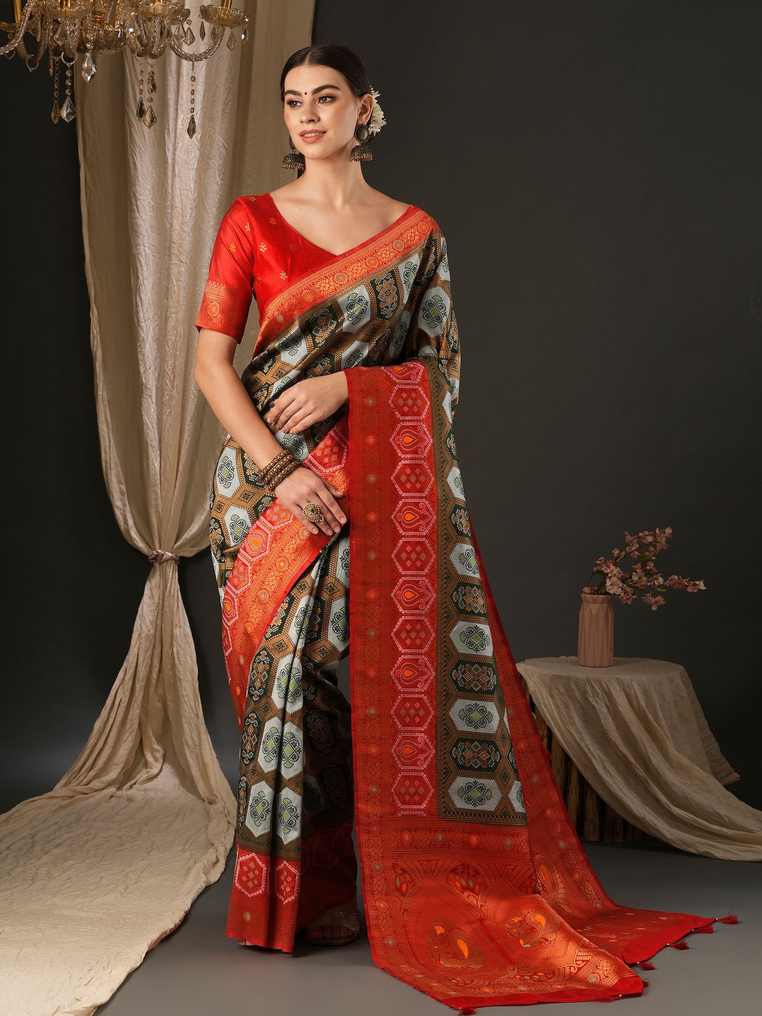 green silk blend printed saree women ethnic traditional partywear wedding festive stylish elegant designer lightweight soft comfortable premium quality rich texture graceful chic versatile heritage classic modern occasion collection silk