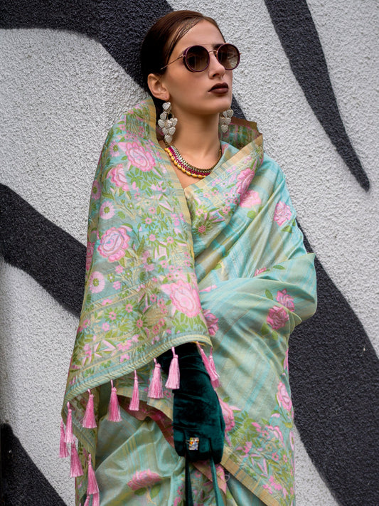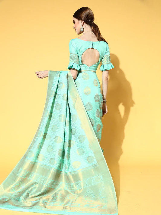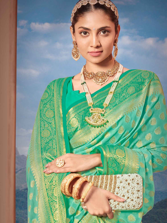 Regal Sea Green Sheer Chiffon Lightweight Weave Saree