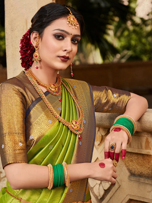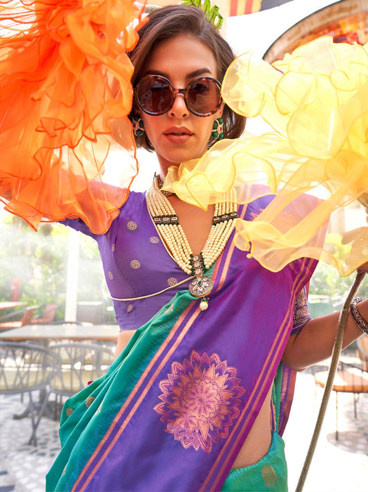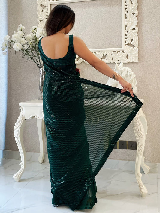 Regal Teal green Sheer Chiffon Lightweight Weave Saree