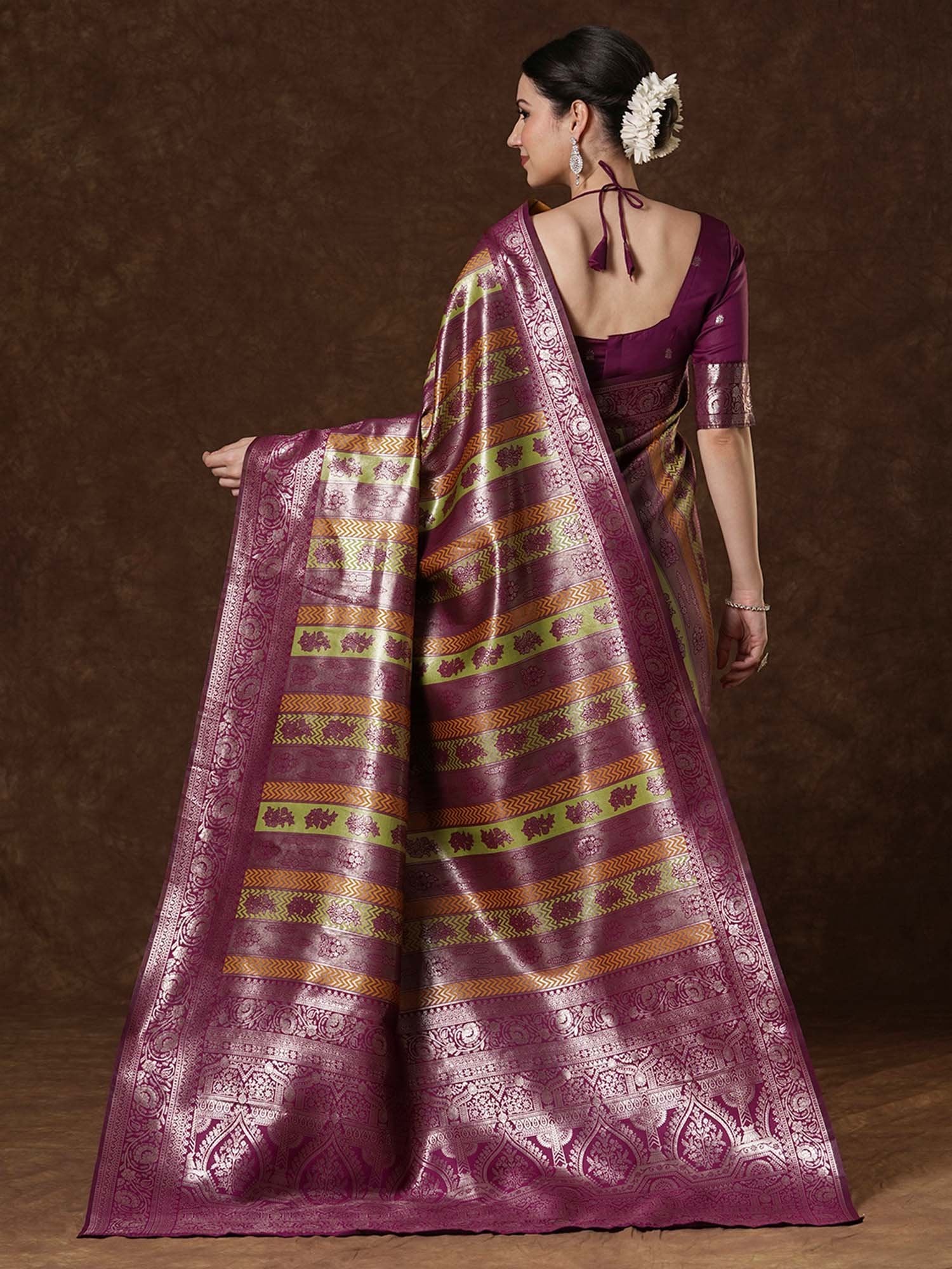Magenta Kanjeevaram Banarasi Silk Woven Saree