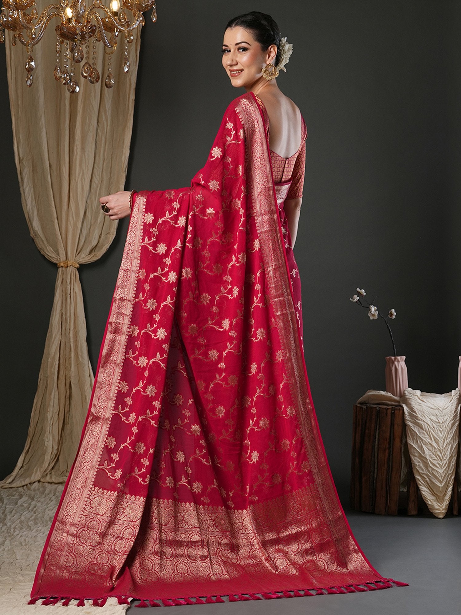 At DORI, every saree is a reflection of over 30 years of textile expertise, crafted with love by skilled artisans across India. Rooted in the Make in India initiative, we ensure 100% authenticity and ethical sourcing in every piece. Our deep connections with weavers allow us to curate collections that celebrate India’s rich heritage, loved by customers worldwide and embraced by celebrities who value timeless elegance.
