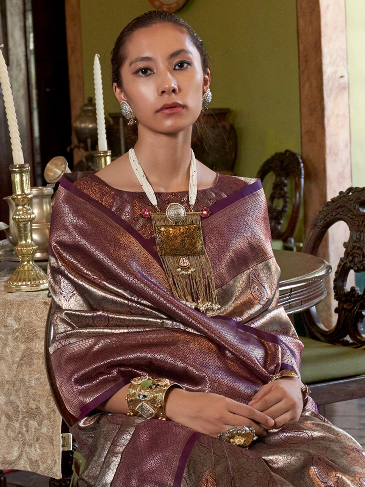 Purple Banarasi Kanjeevaram Silk Woven Saree
