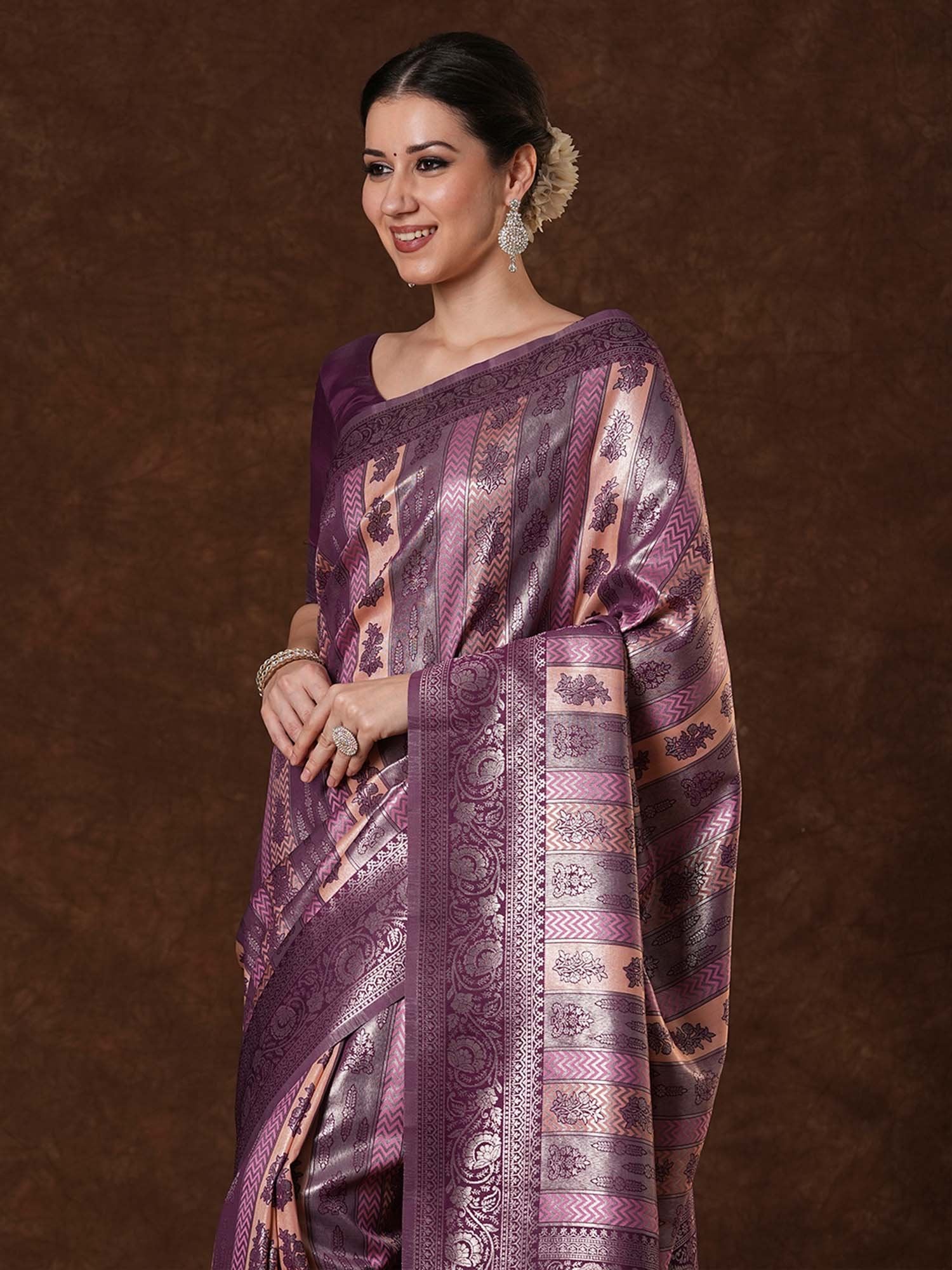 Purple Kanjeevaram Banarasi Silk Woven Saree