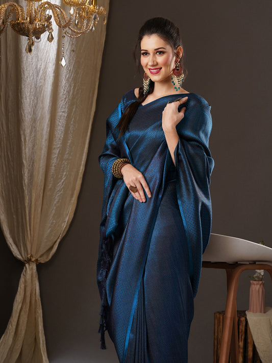 Tealblue Kanjeevaram Silk Blend Woven Saree