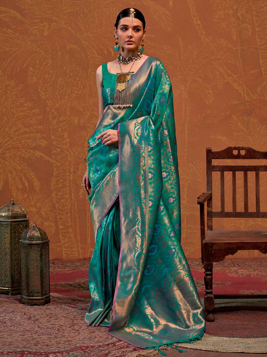Teal Banarasi Kanjeevaram Silk Woven Saree