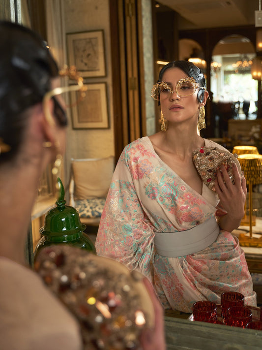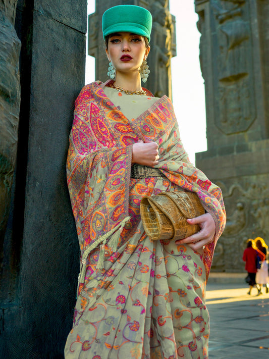 Multicolor Cream Kashmiri Jamewar Silk Saree