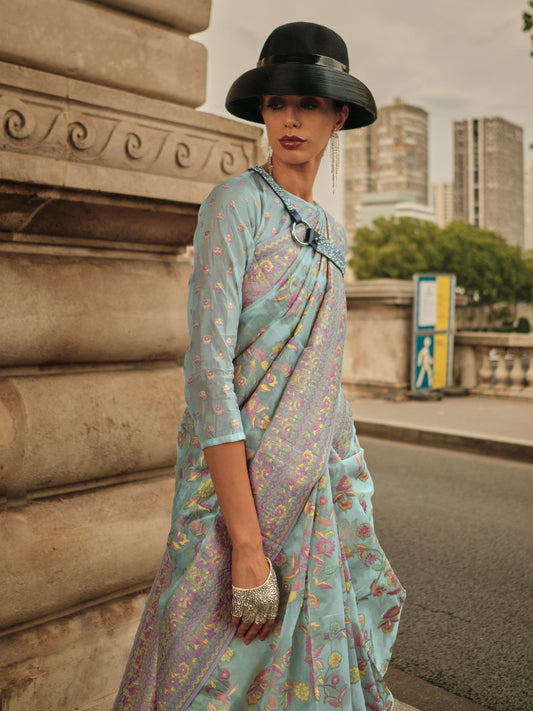 Silver Grey Kashmiri Modal Handloom Silk Saree