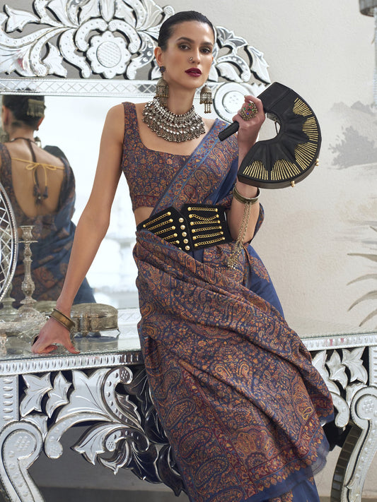Navy Blue Modal Kashmiri Handloom Silk Saree